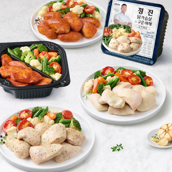 정진 닭가슴살&구운야채 도시락 혼합 12팩 : 갈릭4, 블랙페퍼4, 탄두리4